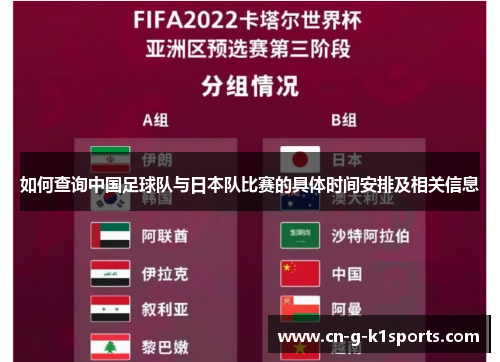 如何查询中国足球队与日本队比赛的具体时间安排及相关信息
